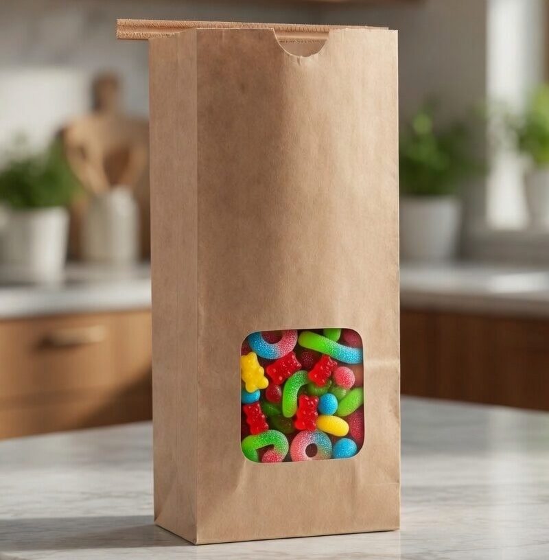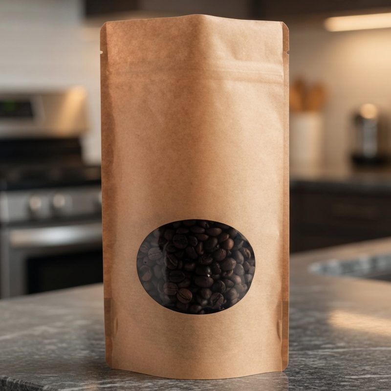 16oz Poly Stand Up Zip Pouch with Oval Window – Natural Kraft