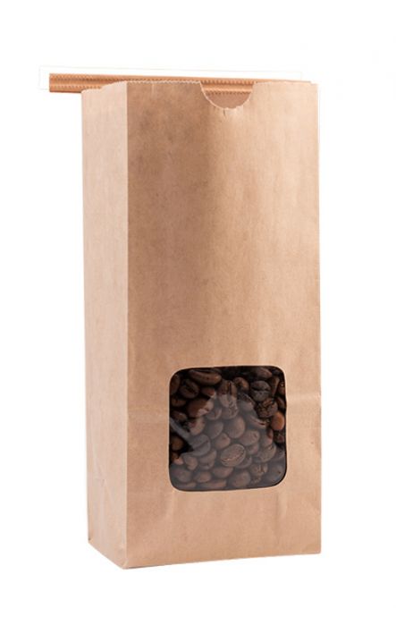 16oz Windowed Natural Kraft Paper Bags with Tin Ties & Poly Liner
